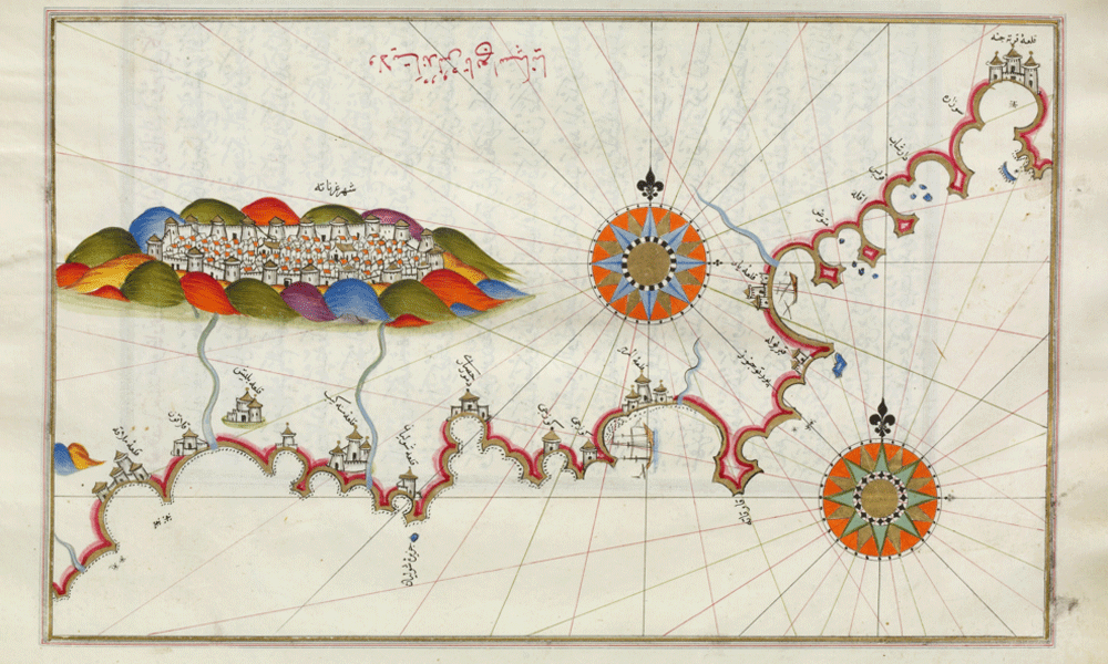 L’ouvrage intitulé Kitâb-I Bahrriyye, dû au talent du géographe Piri Reis, demeure l’exemple le plus marquant de la géographie et de l’histoire cartographique ottomanes. Il comporte plus de 200 cartes originales aux couleurs vives. Usant d’une technologie étonnament moderne pour le seizième siècle, le Kitâb-I Bahrriyye regorge des bonnes informations sur les ports, les côtes et les îles. C’est un atlas complet de portulans de la mer Égée et de la Méditerranée.