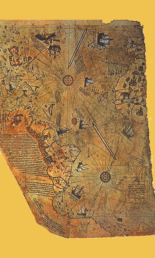 La carte de Piri Reis est une carte ancienne, de style portulan, découverte en 1929 lors de la restauration du palais de Topkapı à Istanbul. Elle est attribuée à l’amiral et cartographe ottoman Piri Reis qui l’aurait tracée en 1513. Dessinée sur une peau de gazelle, elle détaille les côtes occidentales de l’Afrique et les côtes orientales de l’Amérique du Sud.