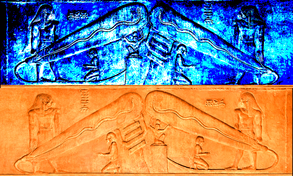 Quelles que soient l’époque, la latitude et les circonstances, il semble que nos ancêtres aient toujours recherché l’éveil, l’illumination, le vide mental qui permet la plénitude intérieure. D’innombrables techniques ont été utilisées dans ce même but. Le bas-relief égyptien qui suit montre l’utilisation de ce que je pense être des caissons à Vril, sur le modèle des caissons hyperbares des plongeurs ou des caissons de privation sensorielle qui faisaient nos délices dans les années 80.