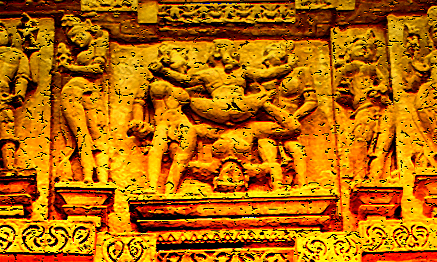 Certes, il y a pour ça une foule d’autres moyens coquins que les Égyptiens devaient connaître aussi. En tout cas, les anciennes populations de l’Inde s’y adonnaient avec délectation, comme en témoignent les reliefs ornant les temples antiques.