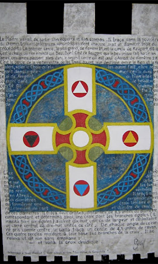 Cet ensemble de la Connaissance de la terre et du ciel, cette Cosmogonie secrète détermina une Théogonie révélant des aperçus profonds sur les origines de la vie, la croyance en la survivance de l’âme et en un Dieu Unique, des rapports entre la Divinité et le magnétisme solaire, terrestre, animal, végétal et minéral. Deux pentacles provenant de la Tradition primordiale sont parvenus jusqu’à nous grâce au Druidisme, à ne pas confondre avec le celtisme et le pseudo-néo-druidisme que nous voyons fleurir aujourd’hui. Ce sont le Zodiaque et la Croix Druidique dite du Dendrophore. (source)Philéas Lebesgue cité par G. Moreau de Waldan