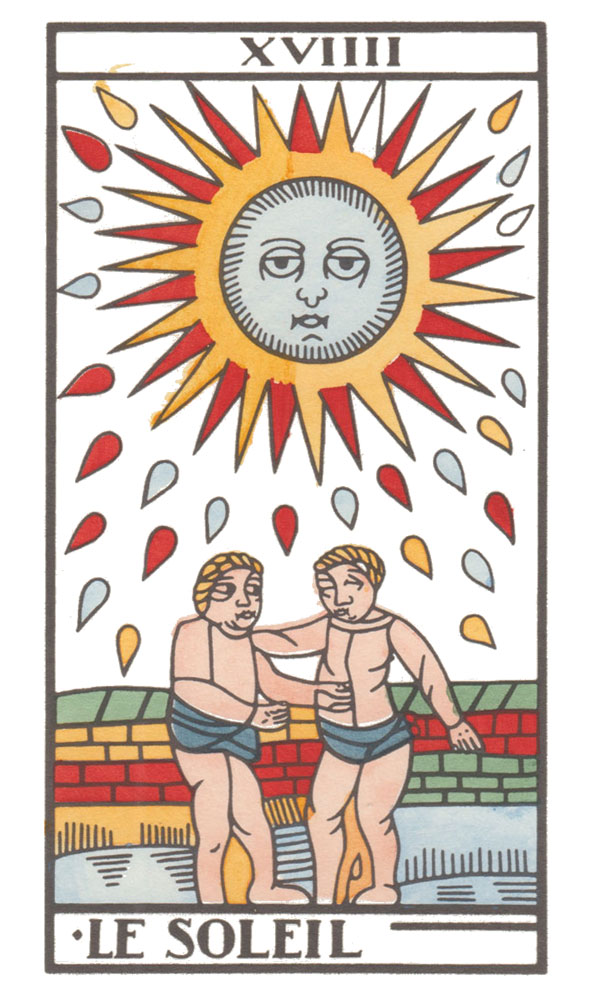 18, it is the arcana The Moon in the initiatory tarot called Marseilles. These divinatory blades were a real passion for my benefactor Jean-Claude Flornoy. Because it was while meditating on them that he suddenly understood that he was awake. Their deep sense overwhelmed him, clear as rock water. While so many imbecilities have been bandied over the years on these mysterious boards, Flornoy’s reading lifted high the veil of Isis.