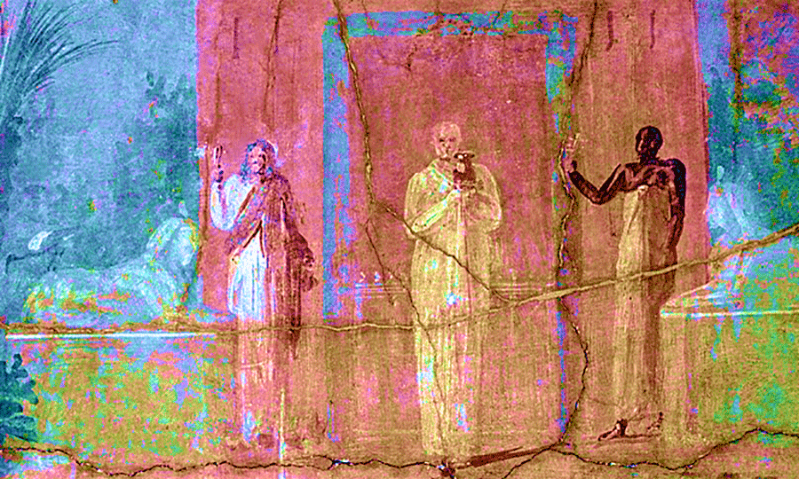 Two frescoes from the National Museum of Naples depict isiac ceremonies. One recognizes the Blacks, writes Snowden, with “the brilliance of their long white tunic, underlined by the black skin of the bare torsos”, but also with the important role they seem to play there. One sees, in the two frescoes, among other roles, here a flute player and there a dancer. But it is known, as Leclant notes, that “worship was often established by authentic Egyptian priests“, that is to say black ones, I add.