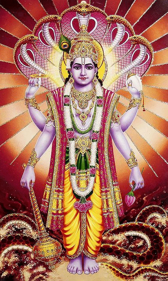 Beneath Rasātala is another planetary system, known as Pātāla or Nāgaloka, where there are many demoniac serpents, the masters of Nāgaloka, such as Śaṅkha, Kulika, Mahāśaṅkha, Śveta, Dhanañjaya, Dhṛtarāṣṭra, Śaṅkhacūḍa, Kambala, Aśvatara and Devadatta. The chief among them is Vāsuki. They are all extremely angry, and they have many, many hoods — some snakes five hoods, some seven, some ten, others a hundred and others a thousand. These hoods are bedecked with valuable gems, and the light emanating from the gems illuminates the entire planetary system of bila-svarga. (source)