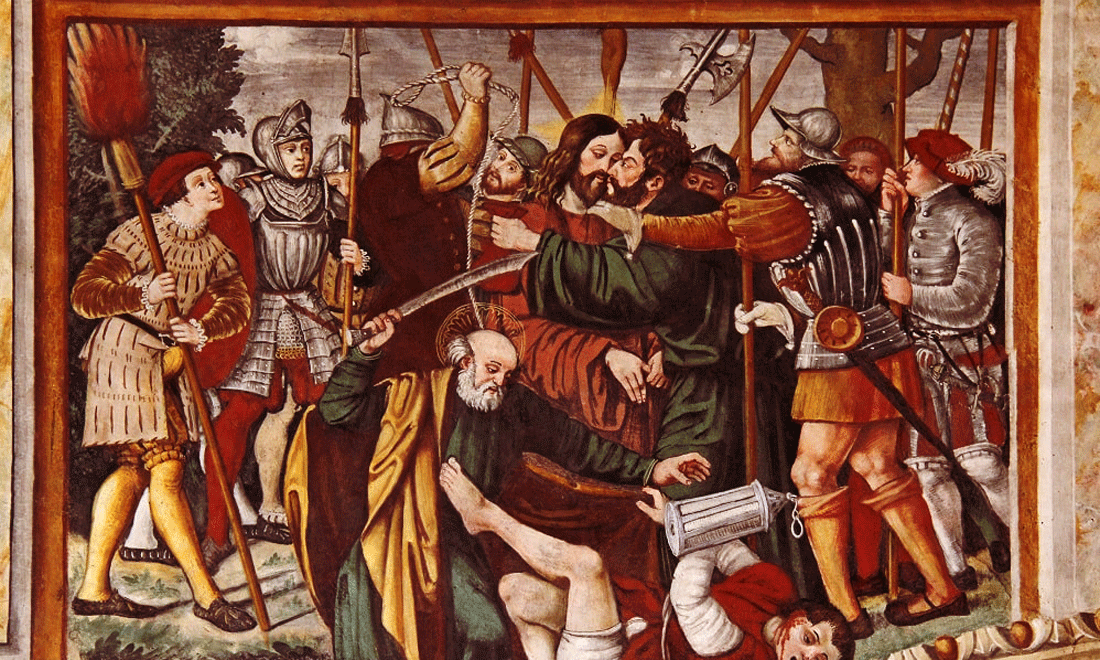 Judas trahit son maître par un baiser. Signe convenu avec les Romains ? Ou avec Jésus ???