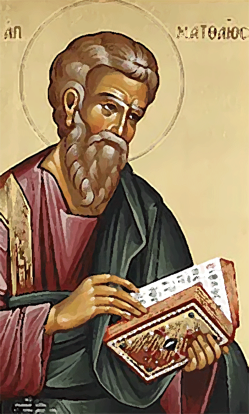 Matthieu n’a pas été désigné par Jésus, mais il est l’un de ses premiers fidèles. Quand Jésus a été baptisé dans les eaux du Jourdain par Jean le Baptiste, Matthieu était déjà à ses côtés. Sa longue fidélité a été récompensée, puisque Matthieu est devenu l’un des quatre évangélistes canoniques : Luc, Marc, Jean et Matthieu.