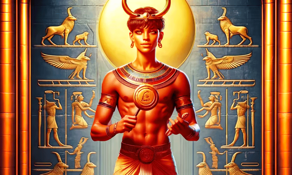 Sa personnalité est double : sous sa forme léonine apparentée à Sekhmet, elle symbolise la révolte et la destruction ; sous sa forme bovine, elle représente la joie, la musique, la danse et la sexualité. Fille de Rê et souvent liée à Horus, Hathor aurait eu son temple principal à Denderah. (source)