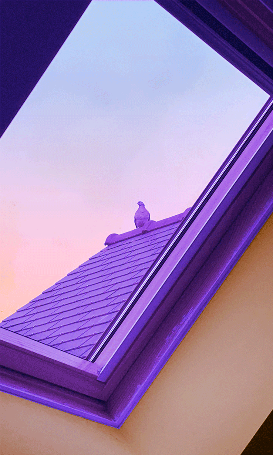 Un autre signe m’a paru favorable, un oiseau s’est posé sur le bout de mon toit, à portée de vue de mon lit où je me situais. Il a fixé droit dans ma direction plusieurs fois, ce qui m’a paru étrange. Je suis resté longtemps à le contempler, j’ai fermé les yeux quelques secondes et quand je les ai rouverts il avait disparu. J’ai pu le prendre en photo avant.