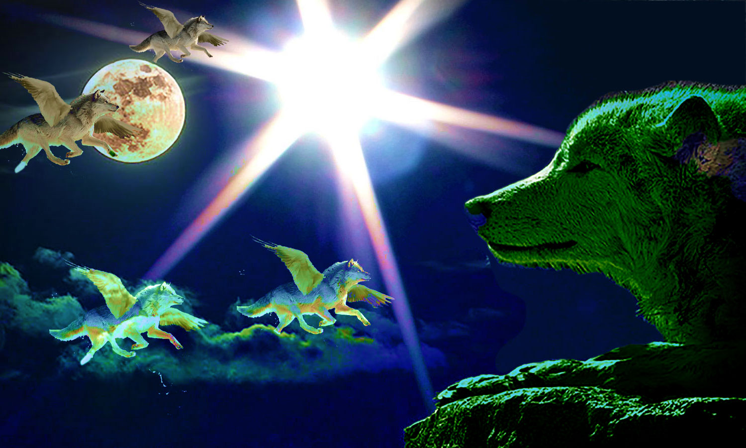 Ma réponse : Encore un rêve prémonitoire ! On dirait que l’aventure astrale vous démange tous. Personne n’attend que je donne le signal du départ… Mais je vais tout de même te dire ce que j’y vois. Le cocher, tu l’as reconnu, c’est moi qui vais guider la meute des Loups Volants. Ton corps qui s’élève dans les airs montre bien que tu es en train de voler. Il n’y a pas de carrosse, nous sommes tous en plein vol. Tu ne t’accroches pas à la crinière blanche d’un cheval, mais à la queue d’un Loup blanc… Quant au parc à thème, c’est le début de nos explorations nocturnes. Tu es en avance, mais bravo pour la pertinence!