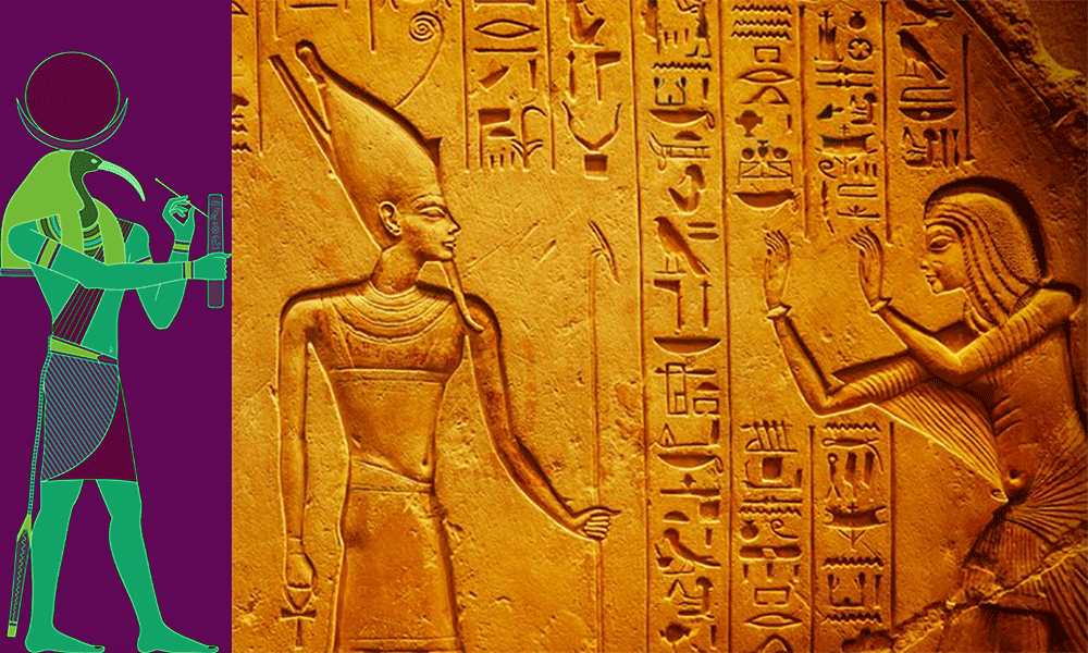 Toth (ou le peuple) écrivant la parole divine