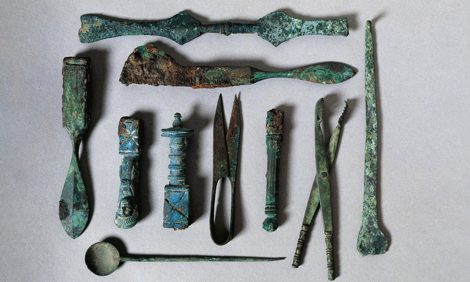 Quelques instruments chirurgicaux trouvés à Pompéi dans la Maison du chirurgien
