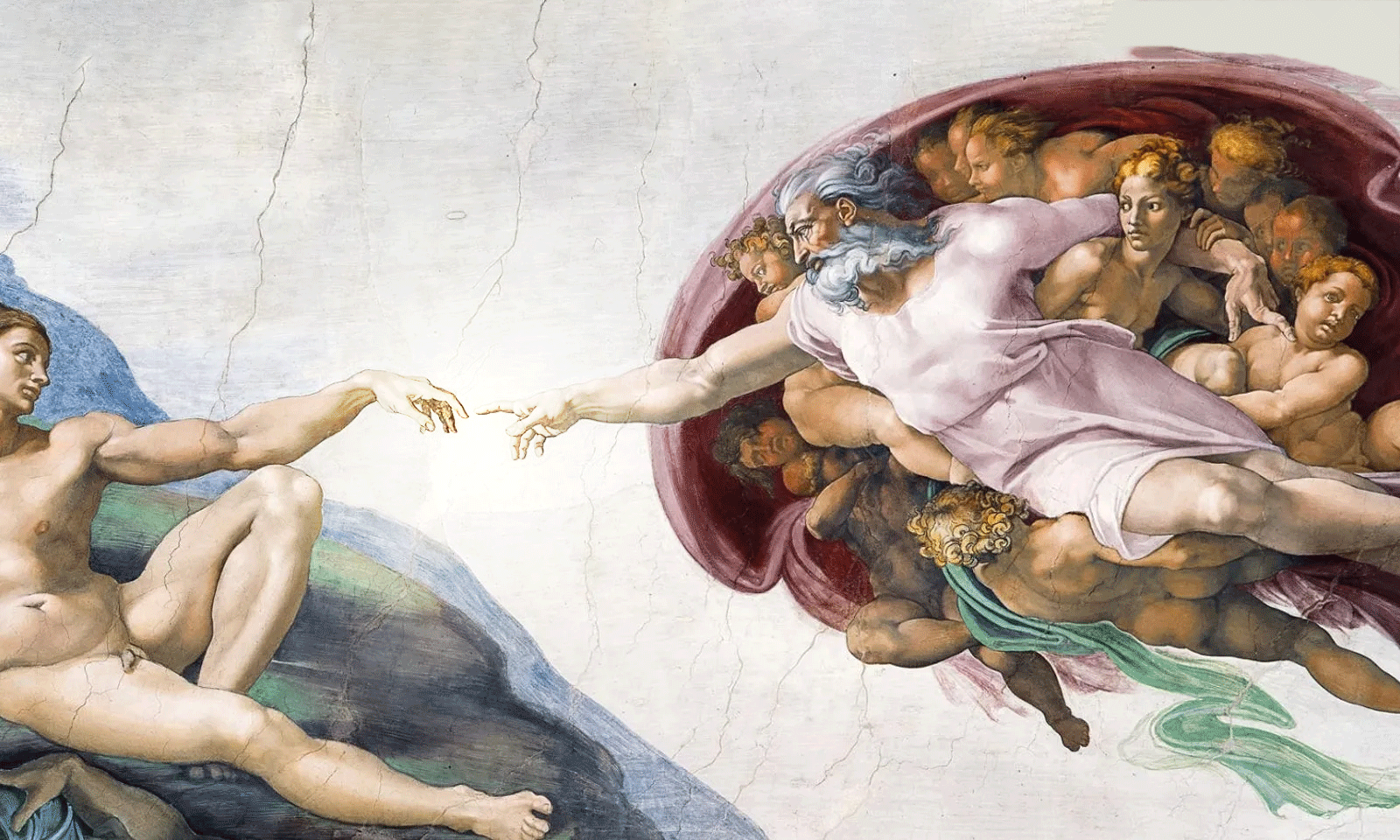 Là sous tes yeux émerveillés se reconstitue le plafond de la chapelle sixtine.