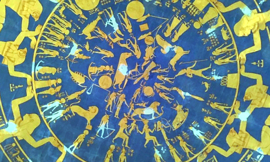 Aujourd’hui au Musée du Louvre, le zodiaque planisphère est un bas-relief célèbre de l’Égypte antique représentant la voûte céleste et ses constellations. Il était placé au plafond d’une chapelle dédiée à Osiris, située sur le toit du temple d’Hathor à Dendérah.